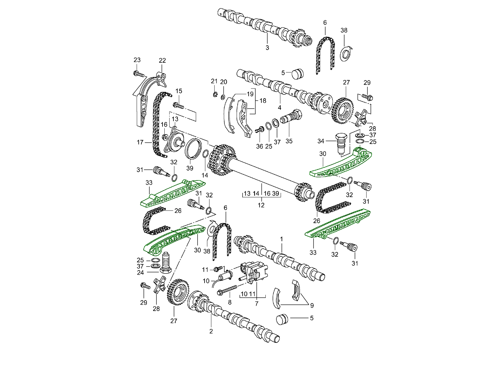 •正时链条导轨(OE 参考编号 99610517353):提供正时链条运行的耐磨表面,有助于正确对准并减少链条振动。