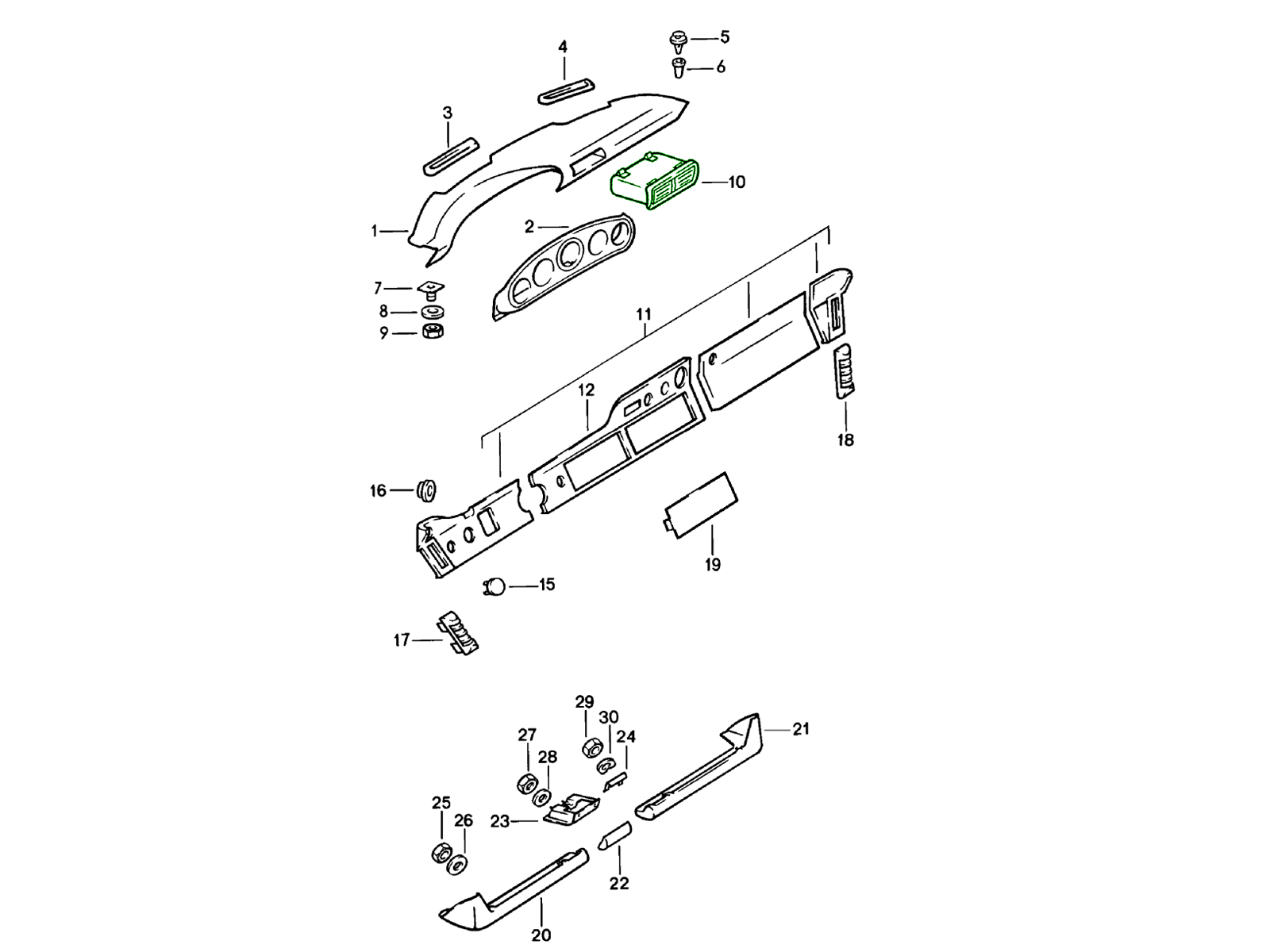 中央通风口。这款 OE Match 中控台出风口喷嘴专为经典保时捷 911 车型(配备空调)的原厂出风口而设计,可直接替换原厂出风口。它完美复刻了原厂出风口的尺寸、形状和百叶窗功能,确保车内气流顺畅,外观与原厂风格一致。