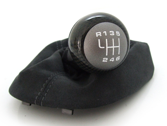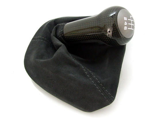 Gearshift Knob With Boot - Black. Carbon fiber knob with Alcantara boot, and aluminum-look shift pattern.