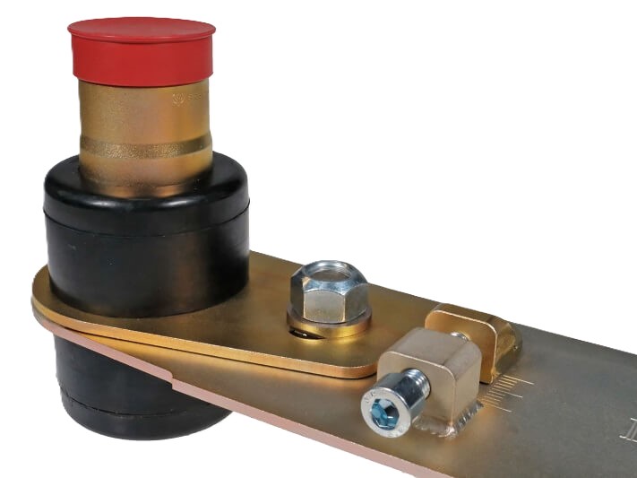 Drilled hole positively defines plate length ensuring proper thread engagement at double adjuster and rod end, preventing accidental over-extension possible with double-slotted designs.