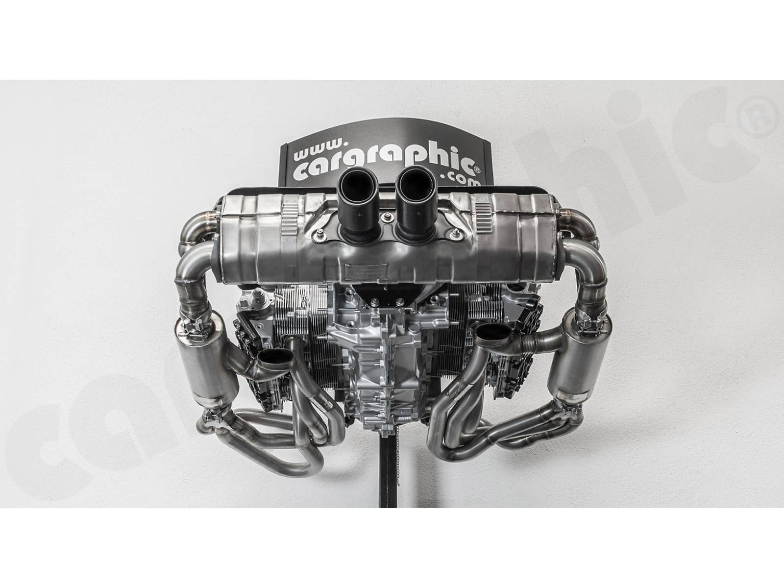 CARGRAPHIC GT Sport排气系统,复古风格,配备ID45 GT歧管套件,可选配2个200cpsi催化转化器、加热功能、排气阀和4>2流式后消音器,中置2x70mm排气口,GT3外观。