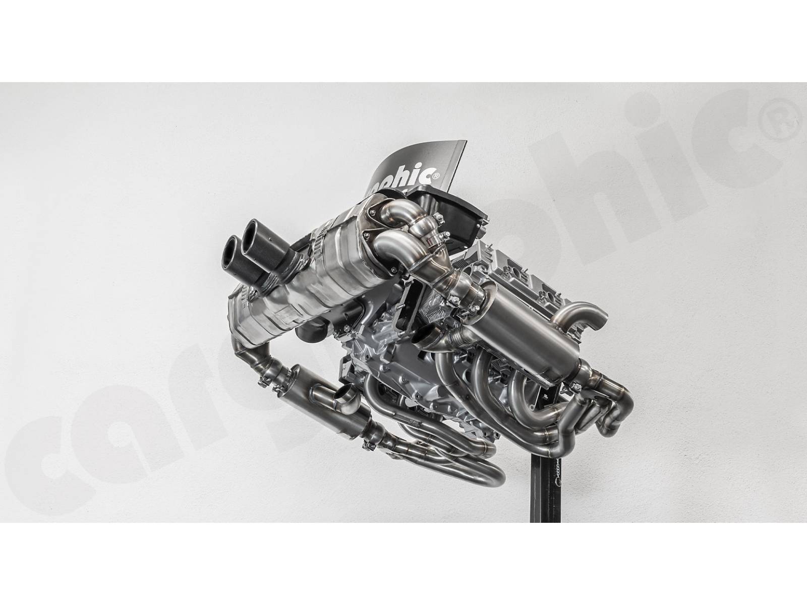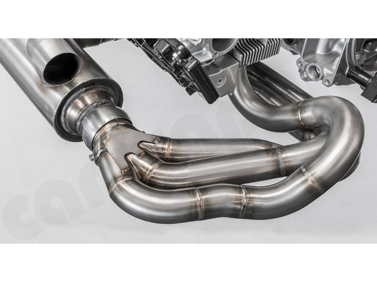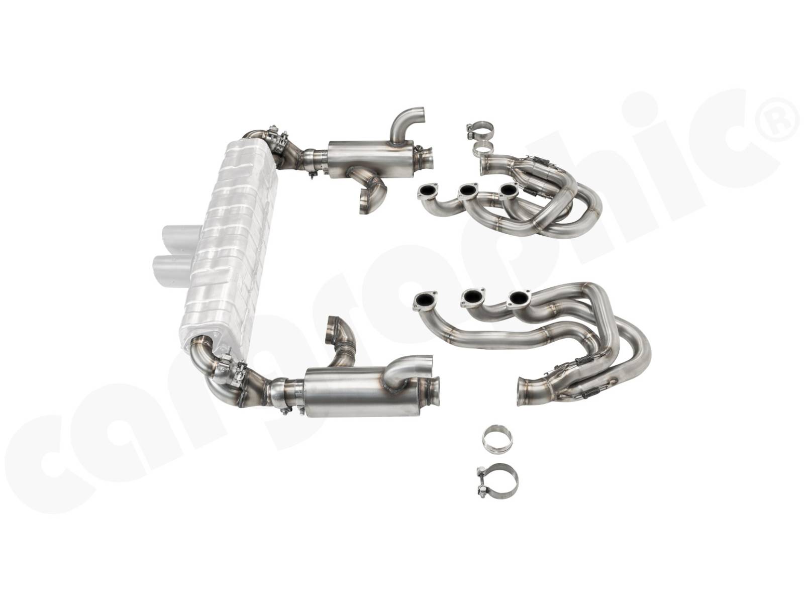 CARGRAPHIC GT Sport 排气系统,配备 ID45 GT 歧管套件,带/不带2x200cpsi 催化转化器,带加热阀和排气阀 - 与 OEM GT3 后消音器配合使用。