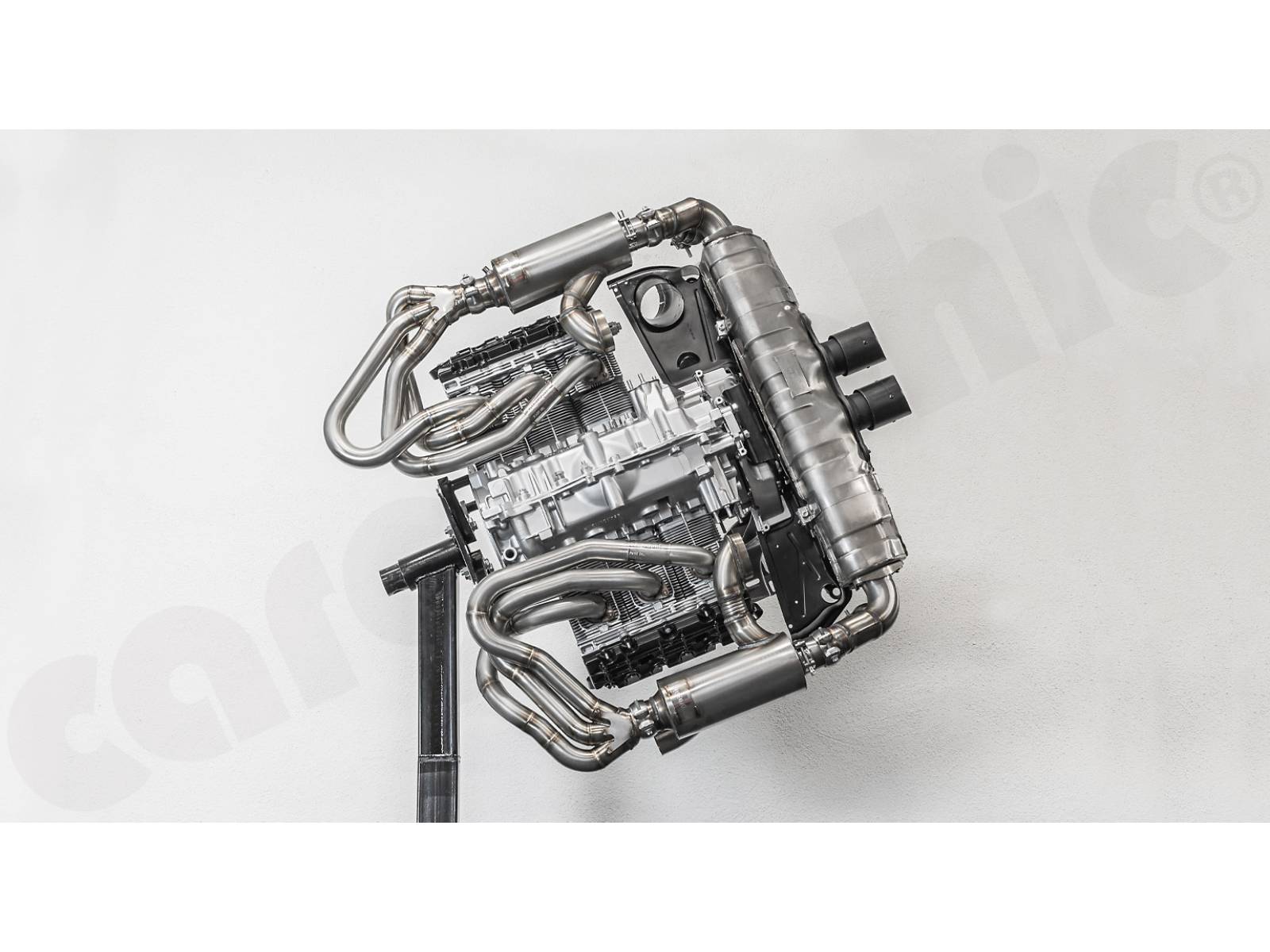 CARGRAPHIC GT Sport 排气系统,配备 ID42 GT 歧管套件,带/不带2x200cpsi 催化转化器,不带加热功能,排气阀和 4>2 流后消音器,带 2x70mm 中央出口,GT3 外观。